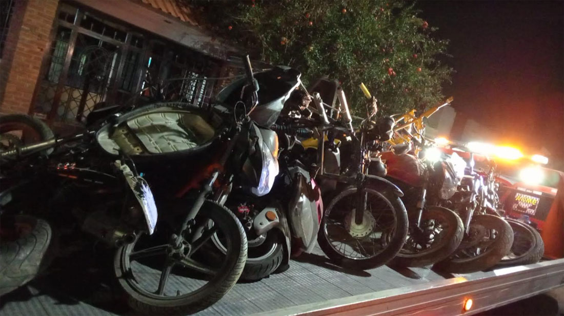 Durante la diligencia fueron halladas 28 motocicletas de diferentes marcas y modelos, 5 de ellas reportadas como robadas y 23 alteradas en los medios de identificación, así como placas de circulación que corresponden a vehículos con reporte de robo, y una tonelada y media de autopartes sin medios de identificación.