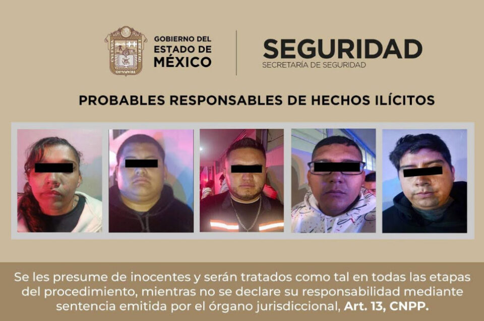 ZUMPANG, Méx.- Trabajos coordinados entre la Secretaría de Seguridad del Estado de México (SSEM) con la Policía Municipal, permitieron la detención de cinco personas aparentemente relacionadas con dos homicidios. Personal de ambas dependencias atendió un reporte, donde se informó que había dos personas heridas por proyectil de arma de fuego, en la colonia Arbolada Los…