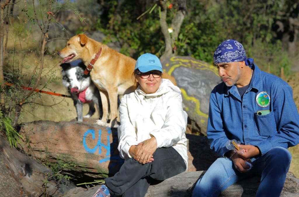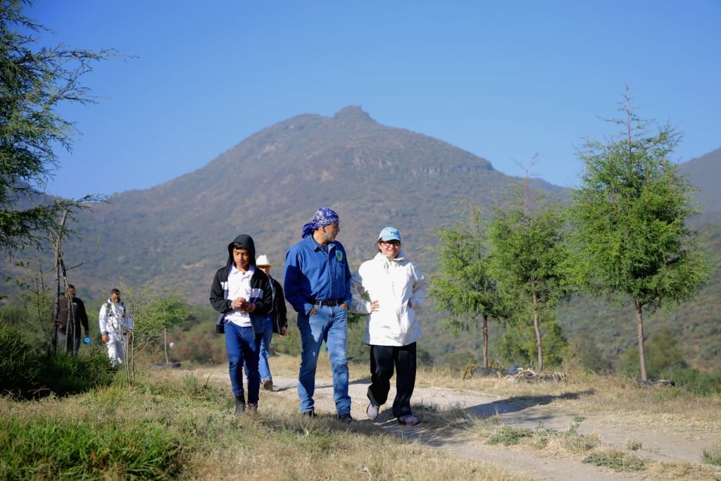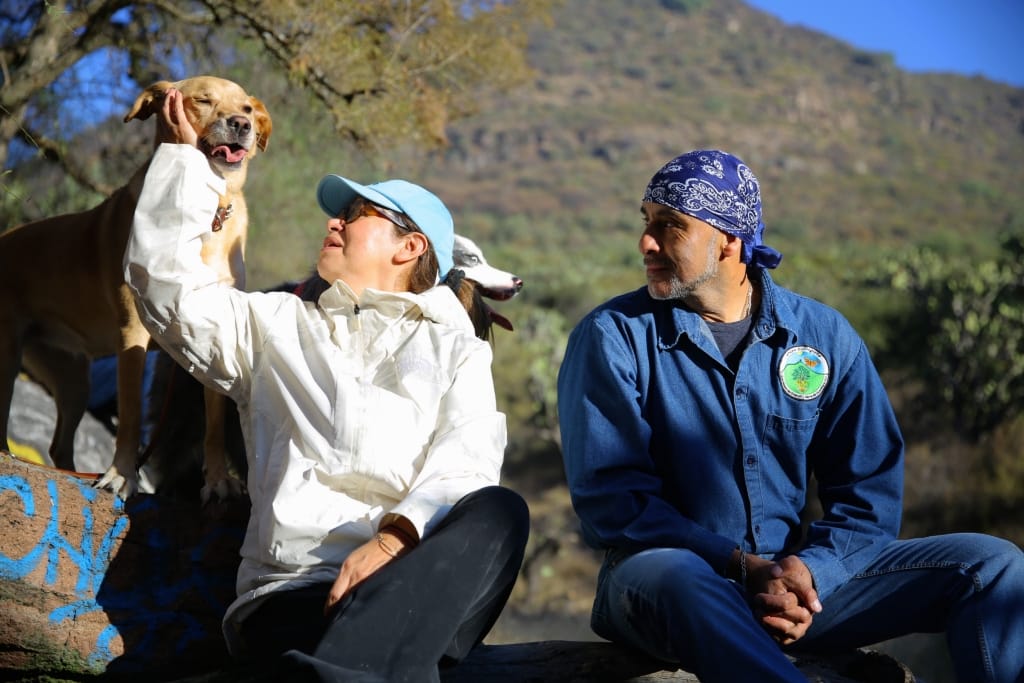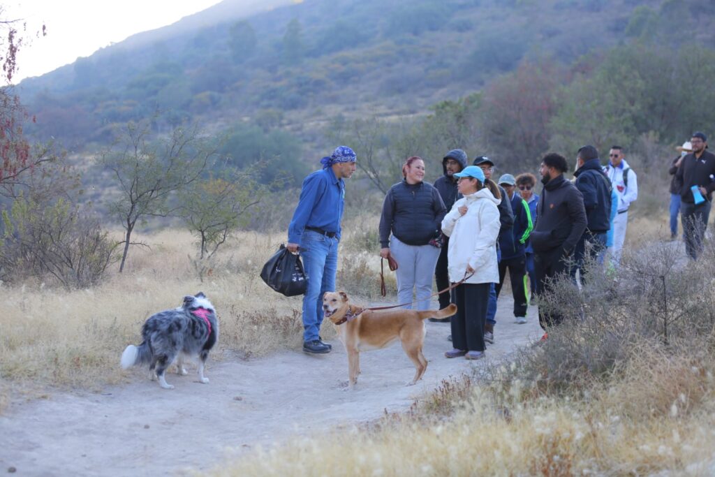 Cisneros Coss caminó por la Sierra de Guadalupe con sus mascotas, Gala y Yune, mientras dialogaba con integrantes de Guardianes del Ehécatl y Sierra de Guadalupe, como Mario Godínez Ascencio, Adrián Camacho Zeferino y Ángel Jáquez Flores, este último presidente de la asociación civil, a los que expuso proyectos para el área natural protegida.