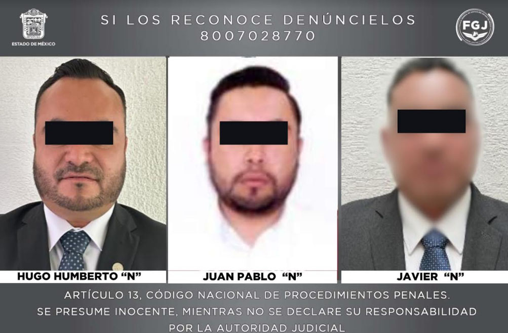 En tal virtud, la Fiscalía General de Justicia del Estado de México solicitó y obtuvo al Juez de Control correspondiente, orden de aprehensión en contra de Hugo Humberto “N”, Juan Pablo “N” y Javier “N”, por su probable intervención en el hecho delictivo de robo con la modificativa agravante de haberse cometido por servidores públicos con violencia y en un lugar cerrado, previsto y sancionado por los artículos 287, 289 fracción V y 290 fracción I incisos a) b) y c, fracción XIII y fracción XVI, en relación a los artículos 6, 7, 8 fracciones I y III, y 11 fracción I inciso d) del Código Penal vigente en el Estado de México. A los investigados se les considera inocentes en tanto sea dictada una sentencia de condena en su contra.