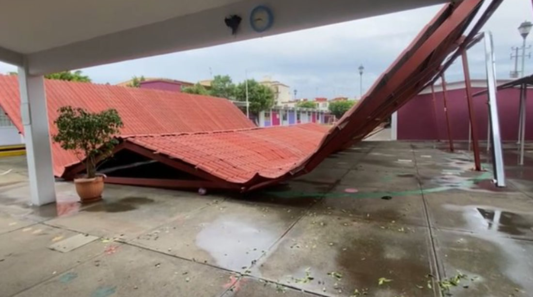TECÁMAC, Méx.- La techumbre de un kínder en el municipio de Tecámac se derrumbó tras las fuertes lluvias registradas el día de ayer.