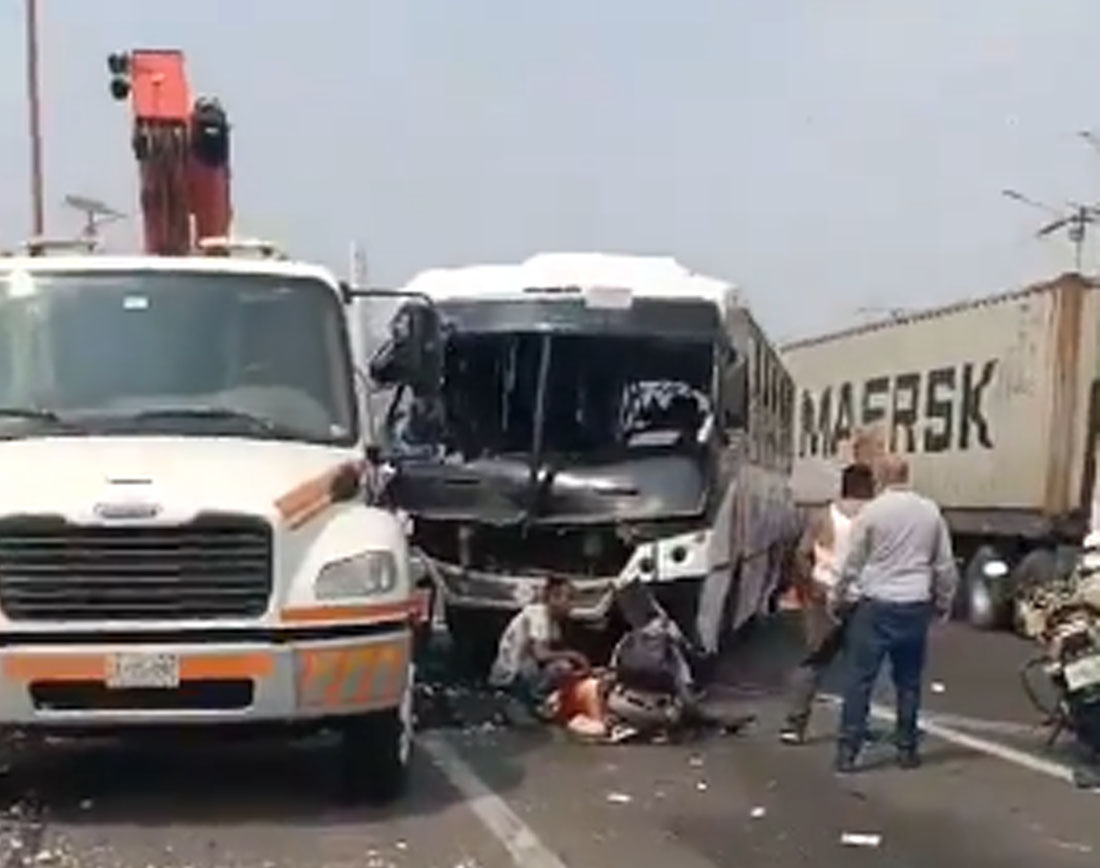 Los primeros reportes indican que el conductor de una unidad de transporte público, que iba a en estado de ebriedad, manejaba a exceso de velocidad y se impactó contra una grúa.