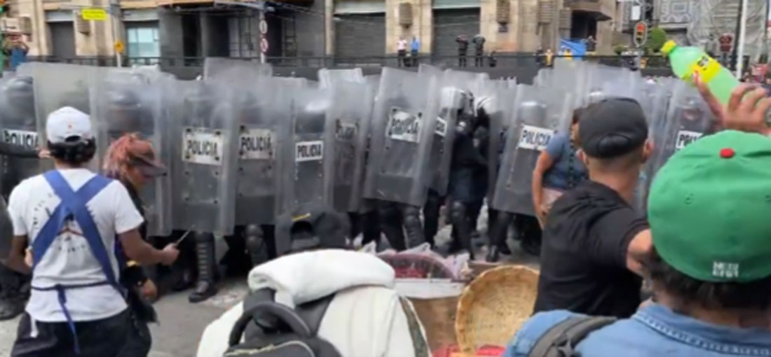Los elementos de la Secretaria de Seguridad Ciudadana (SSC) de la Ciudad de México, intentaron disolver la manifestación, sin embargo, los manifestantes les arrojaron botellas, hielos, palos y piedras.