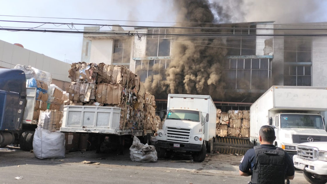 Elementos de Protección Civil y Bomberos del municipio, atendieron de manera oportuna un incendio en una fábrica de cartón en Filiberto Gómez 212, en el Centro Industrial Tlalnepantla.
