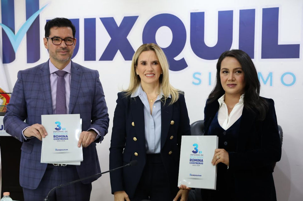 HUIXQUILUCAN, Méx.- Al rendir su Tercer Informe de Gobierno, la presidenta municipal, Romina Contreras Carrasco, destacó que, durante su gestión 2022-2024, se cumplieron al 100 por ciento los compromisos asumidos al inicio de su administración, por lo que se han tenido logros importantes en materia de seguridad, donde se redujo 18 por ciento la incidencia de delitos de alto impacto; el municipio conserva finanzas sanas, y privilegia la salud, educación y alimentación de los huixquiluquenses, lo que ha permitido que Huixquilucan siga avanzando durante estos tres años.