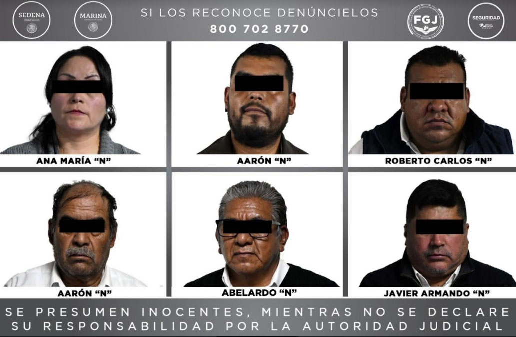 TOLUCA, Méx.- Elementos de la Fiscalía General de Justicia del Estado de México, en coordinación con la Secretaría de la Defensa Nacional (SEDENA), la Secretaría de Marina (SEMAR) y la Secretaría de Seguridad Edoméx (SSEM), cumplimentaron en el municipio de Acambay, orden de aprehensión en contra de Ana María “N”, Aarón “N” (padre), Aarón “N, N” (hijo), Abelardo “N” alias “Don Bel”, Javier Armando “N” y Roberto Carlos “N” alias “Bávaro”, por su probable intervención en actividades extorsivas en la región norte de la entidad mexiquense, a favor de un grupo delincuencial con orígenes en Michoacán.