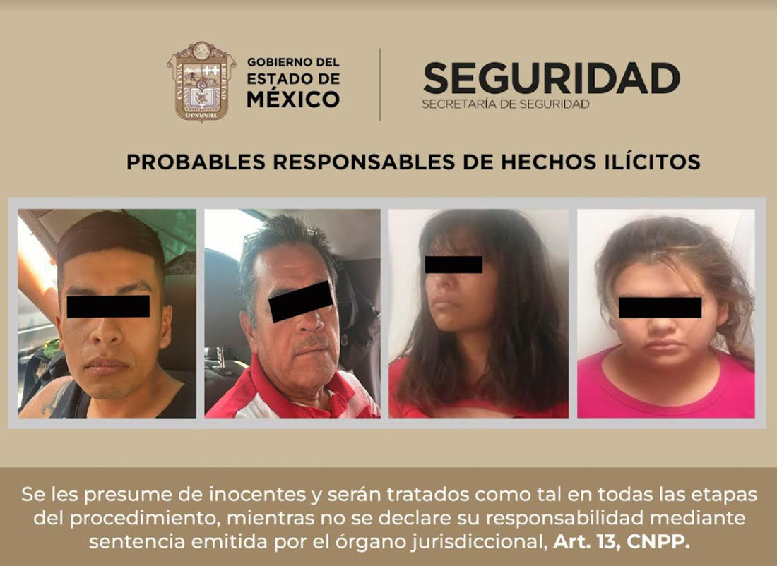NEZAHUALCÓYOTL, Méx.- Derivado de labores de investigación de gabinete y campo, elementos de la Secretaría de Seguridad del Estado de México (SSEM), agentes de la Fiscalía General de Justicia del Estado de México (FGJEM), de la Secretaría de la Defensa Nacional (SEDENA), de la Secretaría de Seguridad y Protección Ciudadana (SSPC) del Gobierno Federal, a través de la Comisión Nacional Antihomicidio (CONAHO) detuvieron a cuatro personas por su probable relación con el homicidio de siete personas en el municipio de Ixtapaluca y uno más ocurrido en la demarcación de Chalco.