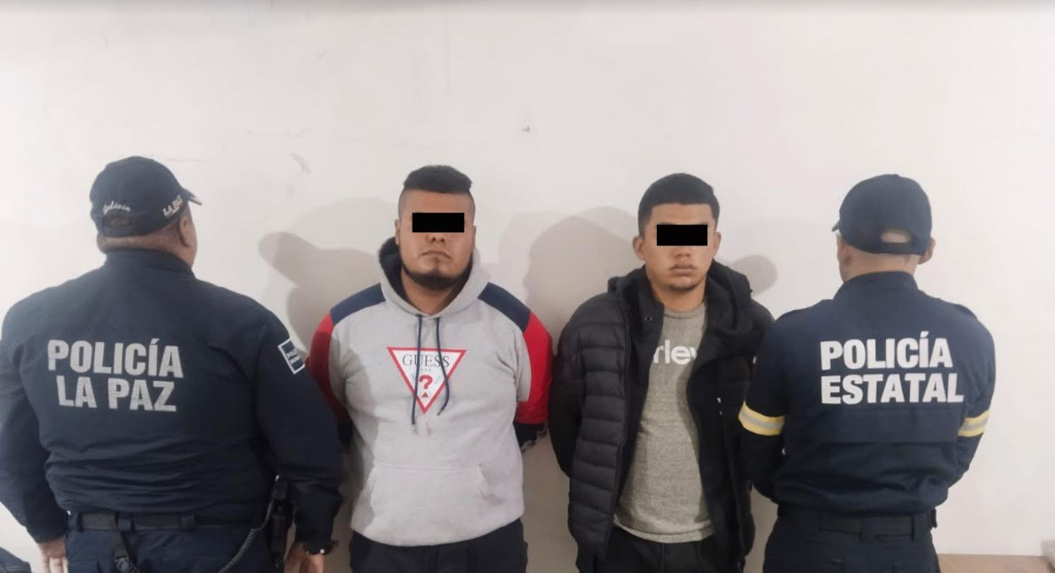 LA PAZ, Méx.- Efectivos de la Secretaría de Seguridad del Estado de México (SSEM) y de la Policía Municipal atendieron una solicitud ciudadana y detuvieron a dos hombres por su probable responsabilidad en el delito de robo con violencia.