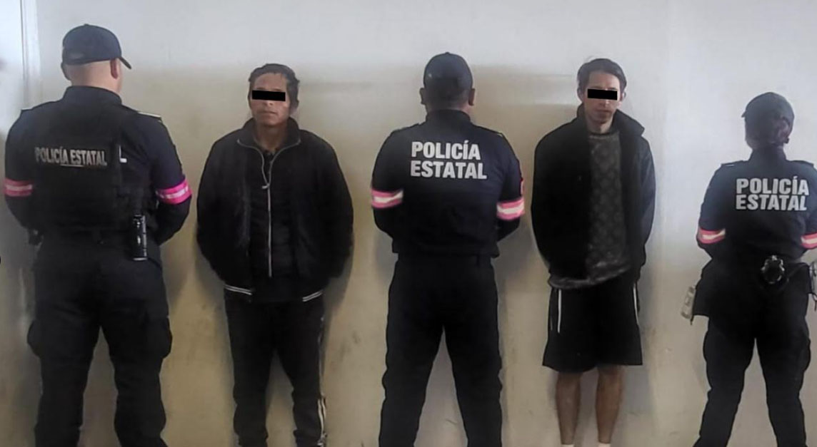 TOLUCA, Méx.- Efectivos de la Secretaría de Seguridad del Estado de México (SSEM) detuvieron a dos individuos, aparentes implicados en el delito de lesiones, en agravio de una mujer y un adulto mayor.
