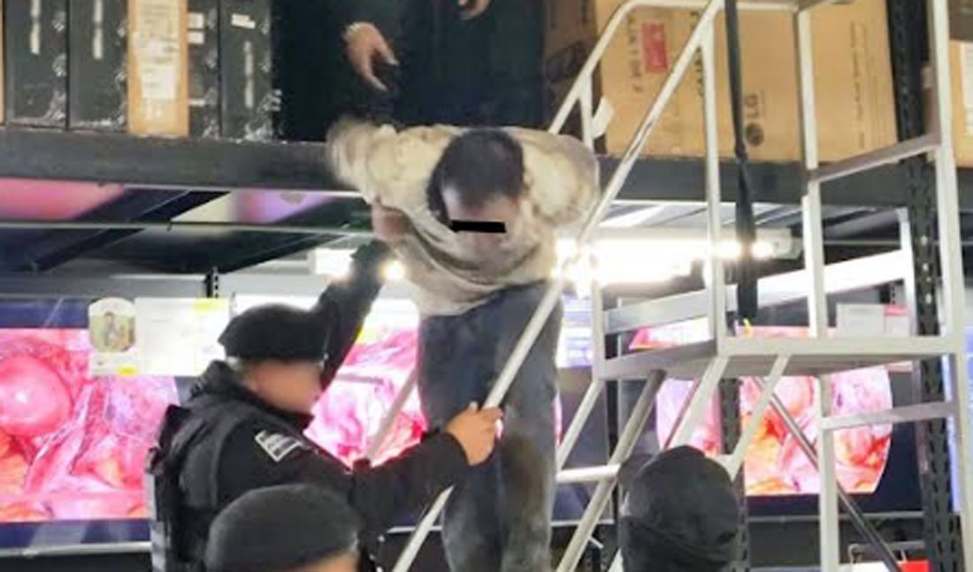 Al llevar a cabo la revisión protocolaria, policías estatales y municipales encontraron a un individuo que intentaba huir del sitio por el techo del establecimiento, mismo que fue detenido y le señalaron el constitutivo del delito al entrar por fuerza a un lugar. La persona dijo llamarse Santiago “N” de 29 años de edad.