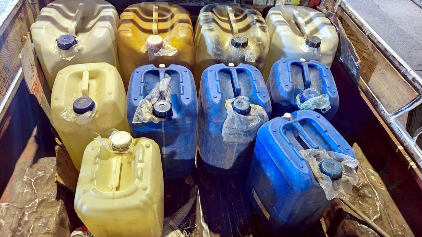 Para corroborar que todo estuviera en orden y conocer el motivo de la actitud sospechosa del sujeto, los oficiales le dieron alcance y procedieron a realizarle una inspección; al término, localizaron en la batea cuatro bidones de 50 litros y cinco más de 20 litros, llenos de gasolina.