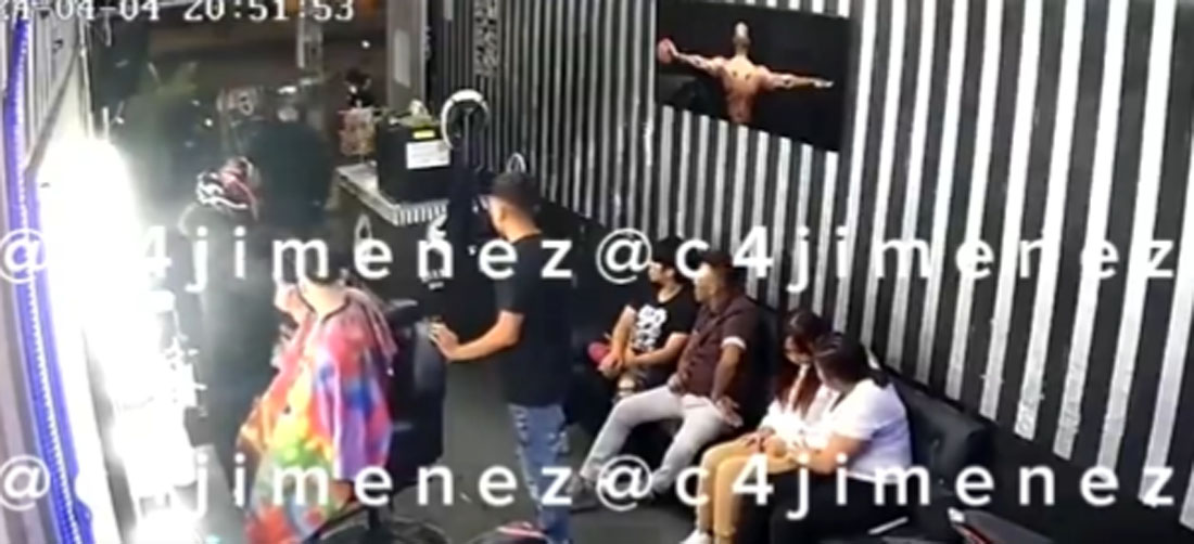 En el vídeo se ve cómo dos hombres entran al negocio, al interior hay seis personas, presuntamente clientes y el barbero, la víctima, que era atendida, fue sometida.