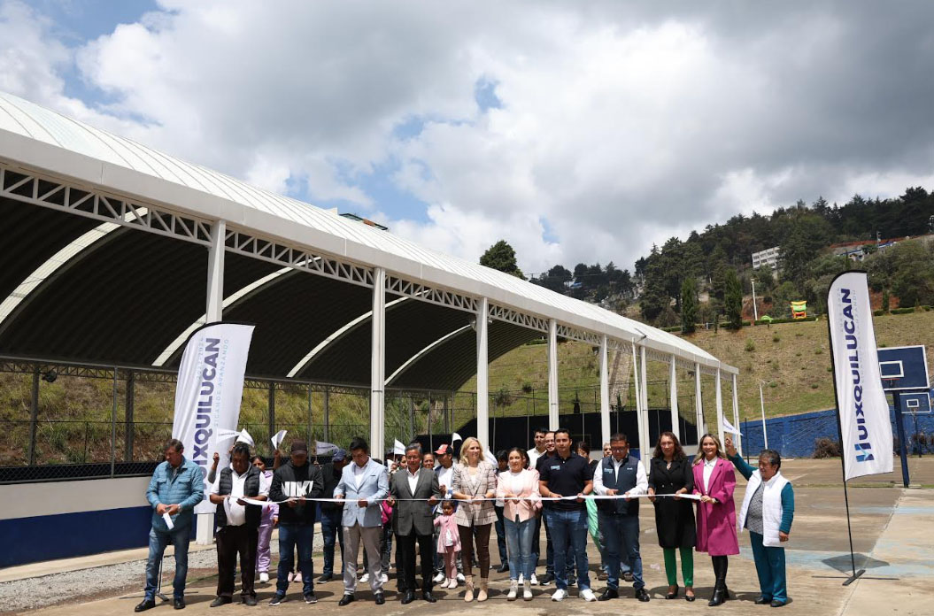 HUIXQUILUCAN, Méx.- Como parte de las acciones para seguir fomentando el deporte y la actividad física entre la población de todas las edades, el Gobierno de Huixquilucan entregó la techumbre de la cancha de fútbol 7 del Deportivo “San Martín” y el módulo de sanitarios, en la comunidad del mismo nombre, donde se invirtieron más de 6.7 millones de pesos y con lo que continúa con el desarrollo de espacios de sano esparcimiento y la convivencia familiar en la Zona Tradicional.