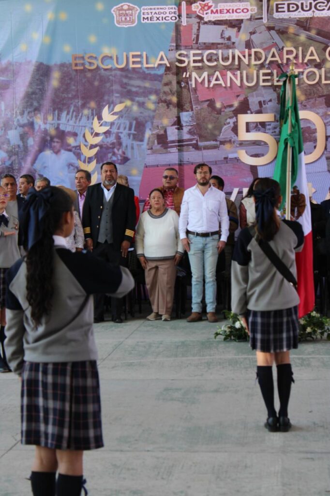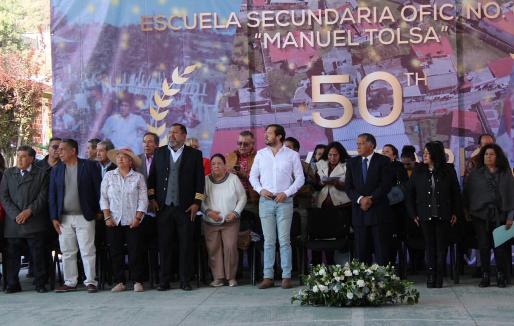 Erick Beller, presidente de la asociación civil “El Cambio de México está en Nuestras Manos”, participó en la celebración del 50 aniversario de la Escuela Secundaria Oficial 0199 “Manuel Tolsa”, en el municipio de Jilotzingo.