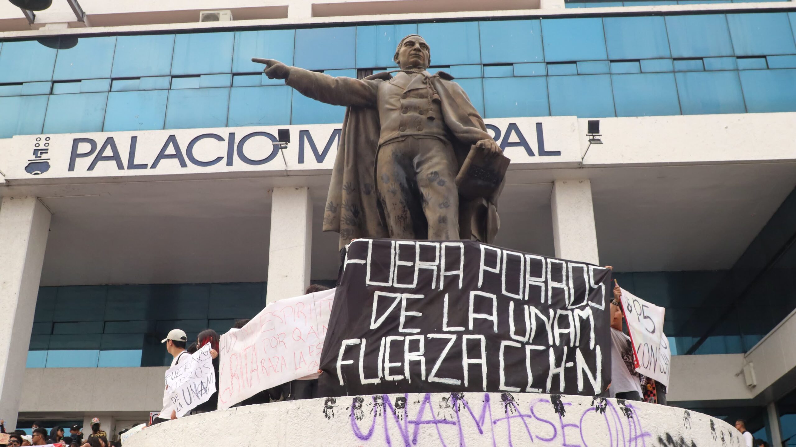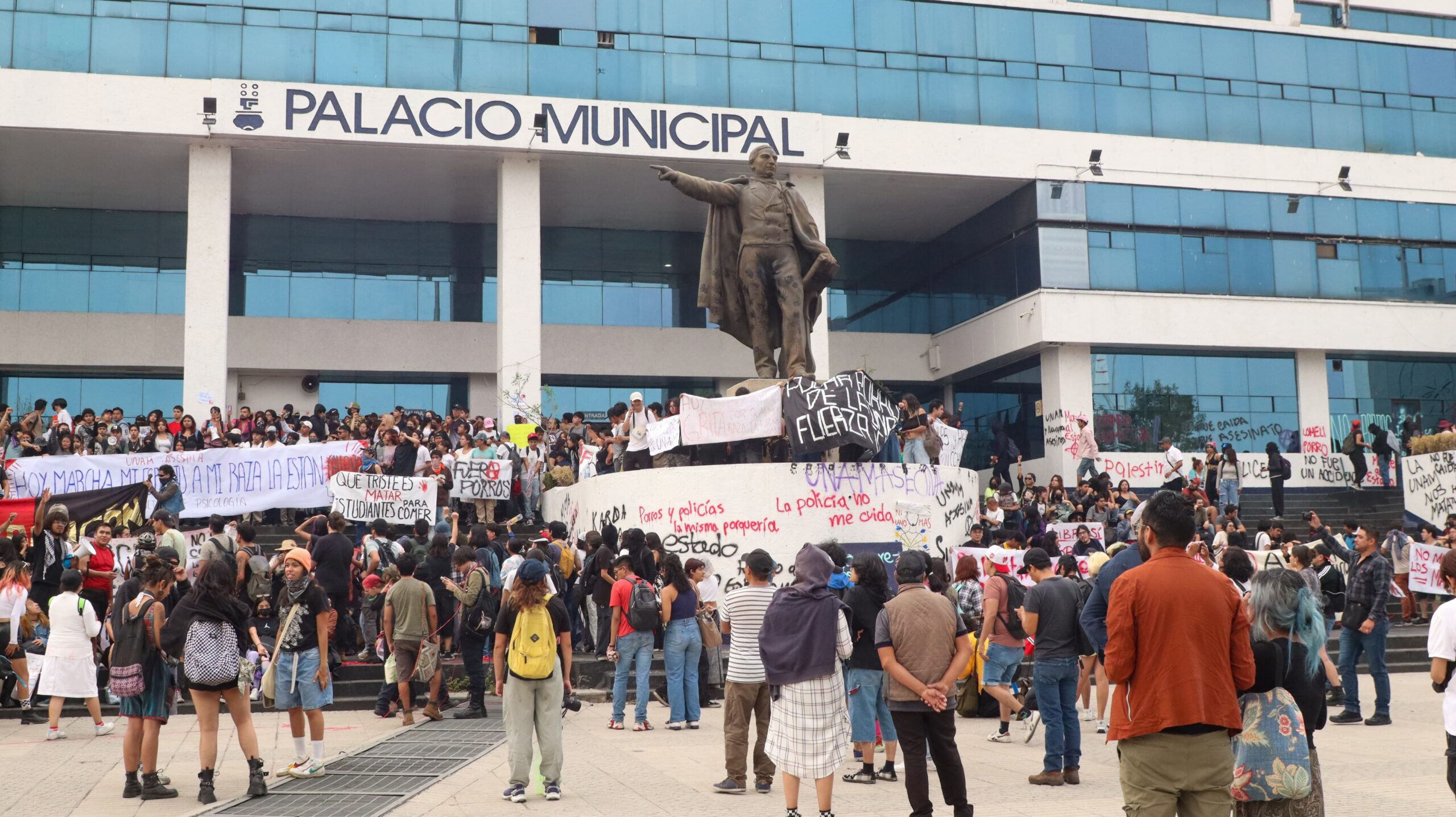 Así que este lunes, más de 200 alumnos y padres de familia caminaron desde el CCH Naucalpan hasta el Palacio Municipal donde realizaron pintas en muros y cristales con leyendas como “La policía no me cuida”, “El estado mató a Oscar” y “Moya es responsable”.