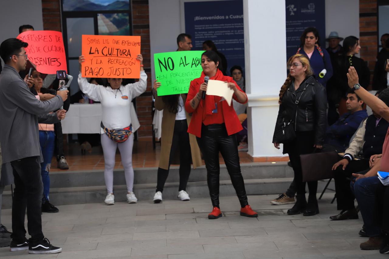 Durante su conferencia de prensa, la alcaldesa atendió las demandas de un grupo de profesores y talleristas que exigían espacios para continuar con sus actividades. Según se explicó, estas clases se cobraban directamente a los usuarios, repartiéndose un porcentaje entre los maestros y el ayuntamiento, sin que los ingresos fueran registrados formalmente en las arcas municipales.