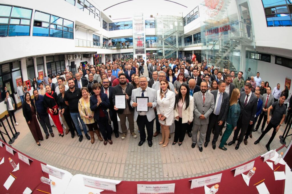 El presidente municipal reiteró, “vamos a reafirmar un principio que da sentido a nuestro servicio público: la justicia es el cimiento de la paz social. Es para mí un honor encabezar este acto que simboliza el compromiso compartido con el Gobierno de la maestra Delfina Gómez, el Secretario del Trabajo, Norberto, Morales Poblete y nuestro Gobierno, para fortalecer la justicia laboral y la paz social a través de la organización y el desarrollo de jornadas de conciliación laboral permanentes”.