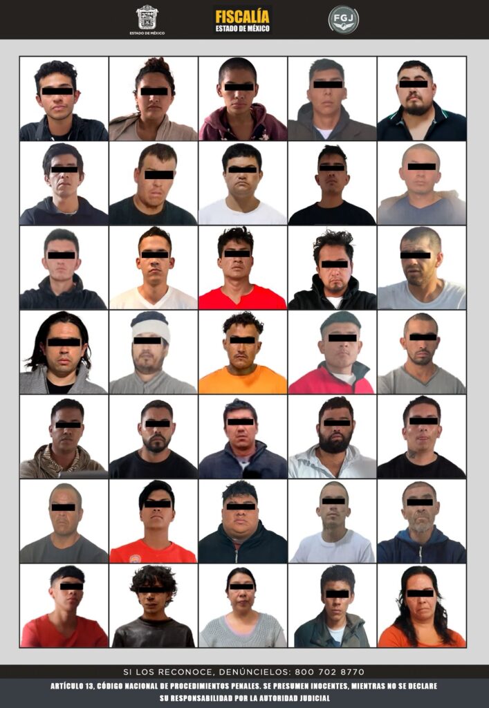 Entre ellos destacan la detención de quien era considerado como un objetivo prioritario para esta Fiscalía al ser uno de los principales generadores de violencia identificado como Airy Azael “N”, quien operaba en la zona de Cuautitlán Izcalli, así como Cristopher “N”, José Luis “N”, Gabriel “N”, Gonzalo “N”, Jaqueline “N”, José Ángel “N”, José Ariel “N”, José Martín “N”, entre otros.