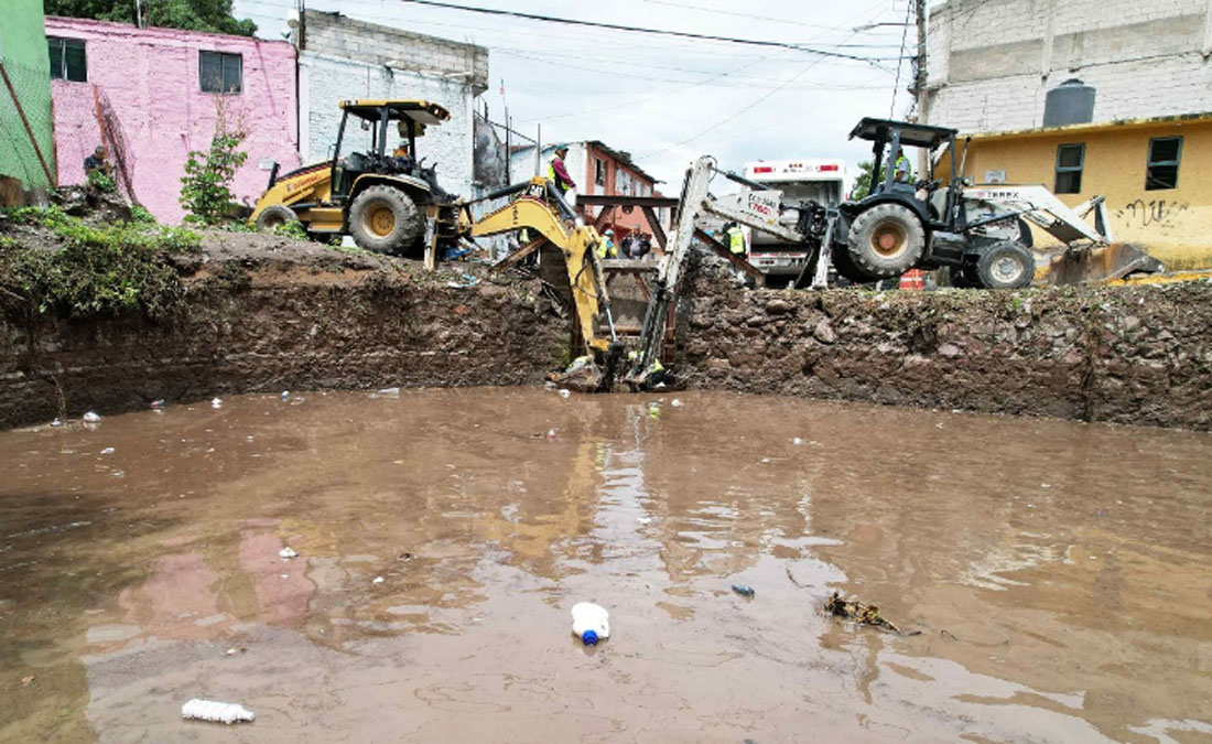 Detalló que durante los trabajos para liberar la infraestructura que controla el desfogue de agua, se retiran cada semana cerca de 150 toneladas de azolve, materiales para construcción, escombro y basura doméstica, como plásticos e inclusive tela y ropa.