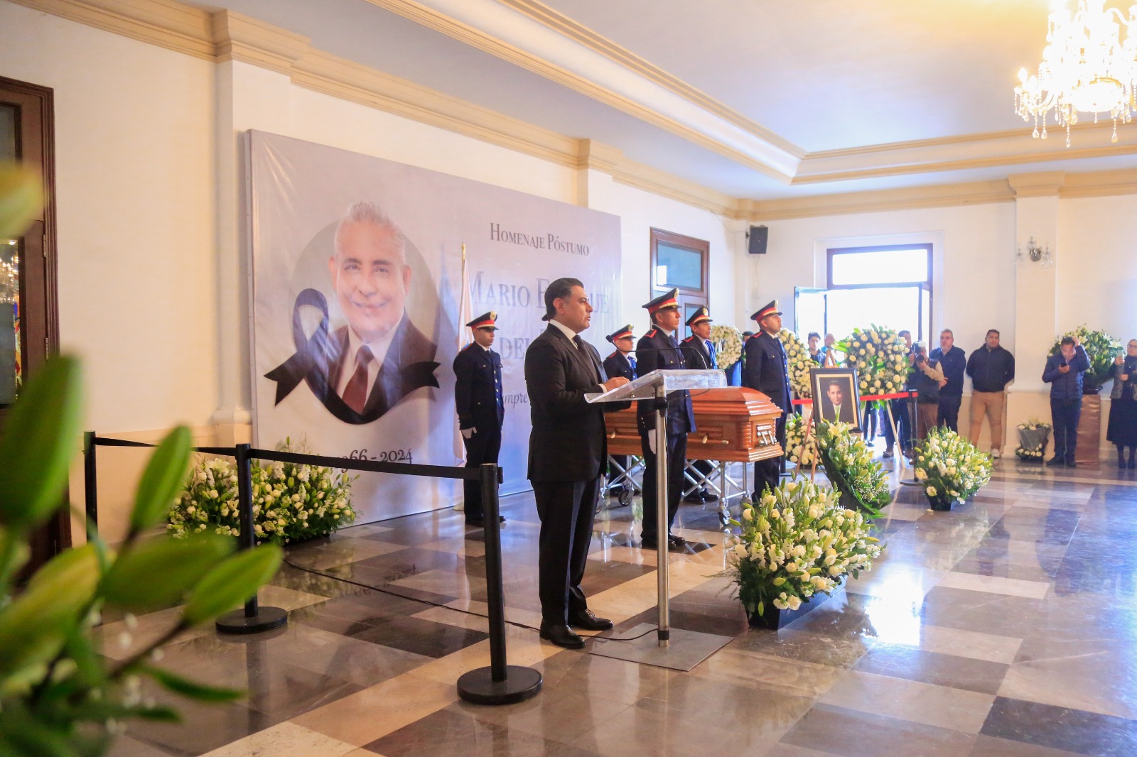 TLALNEPANTLA, Méx.- En un acto solemne, encabezado por el Presidente Municipal, Marco Antonio Rodríguez Hurtado, llamó a los tlalnepantlenses a consolidar y preservar las instituciones del Municipio con trabajo y paz social, durante la ceremonia póstuma por el sensible deceso de Mario Enrique del Toro.