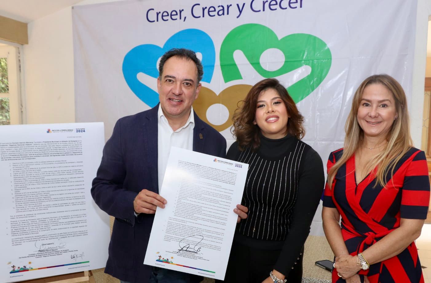 ATIZAPÁN, Méx.- El candidato a la alcaldía de Atizapán de Zaragoza por la coalición Sigamos Haciendo Historia, Gonzalo Alarcón, suscribió un acuerdo para unir fuerzas en favor de la primera infancia, a fin de que sea una prioridad en este municipio.