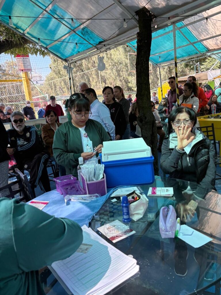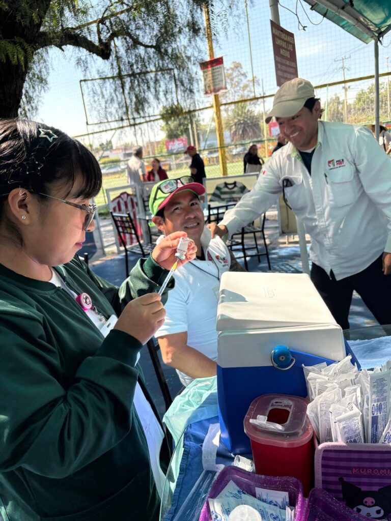 Ahí, en la cafetería de las canchas de futbol de esa zona, decenas de familias recibieron de manera gratuita vacunas contra la influenza, tétanos, neumococo y sarampión que sumaron más de 350 aplicaciones
