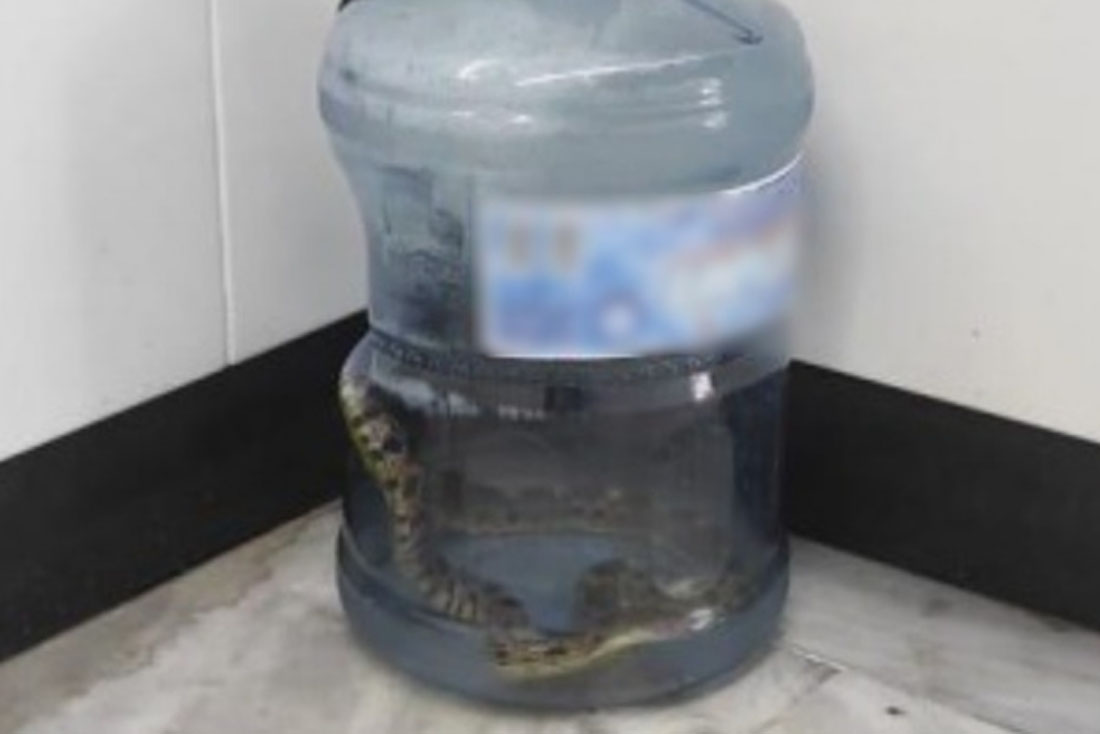 CIUDAD DE MÉXICO, Méx.- Una serpiente fue hallada dentro de un garrafón en la estación Revolución de la Línea 2 del Metro de la Ciudad de México.
