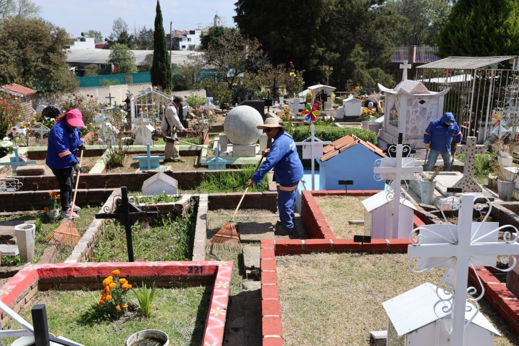 La presidenta municipal de Huixquilucan, Romina Contreras Carrasco, señaló que, en las últimas semanas, trabajadores de la Dirección General de Servicios Públicos y Urbanos llevaron una jornada de limpieza intensa por los 19 cementerios municipales, la cual consistió en el retiro de hierba, pastos, maleza, ramas, piedras, montículos de tierra y residuos sólidos, así como en el mantenimiento de las áreas verdes, para que la población conviva en un entorno sano durante estas celebraciones.
