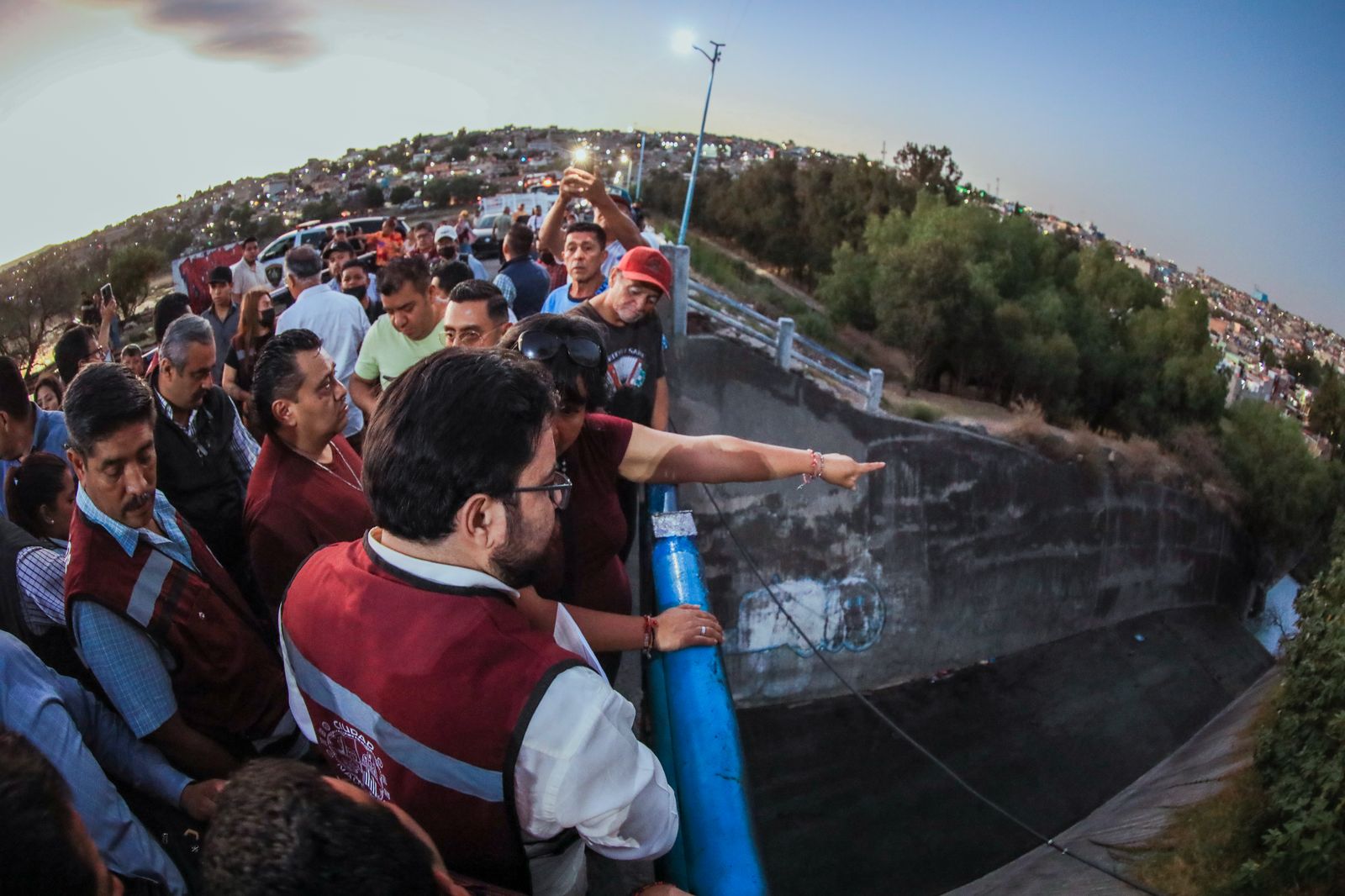 Durante el recorrido, Montoya estuvo acompañado de vecinas y vecinos de la zona, a quienes explicó que estas acciones urgentes se realizan de forma coordinada con la Comisión Nacional del Agua (CONAGUA) y el Organismo de Cuenca Aguas del Valle de México (OCAVM), instancias responsables del manejo de presas en el país.