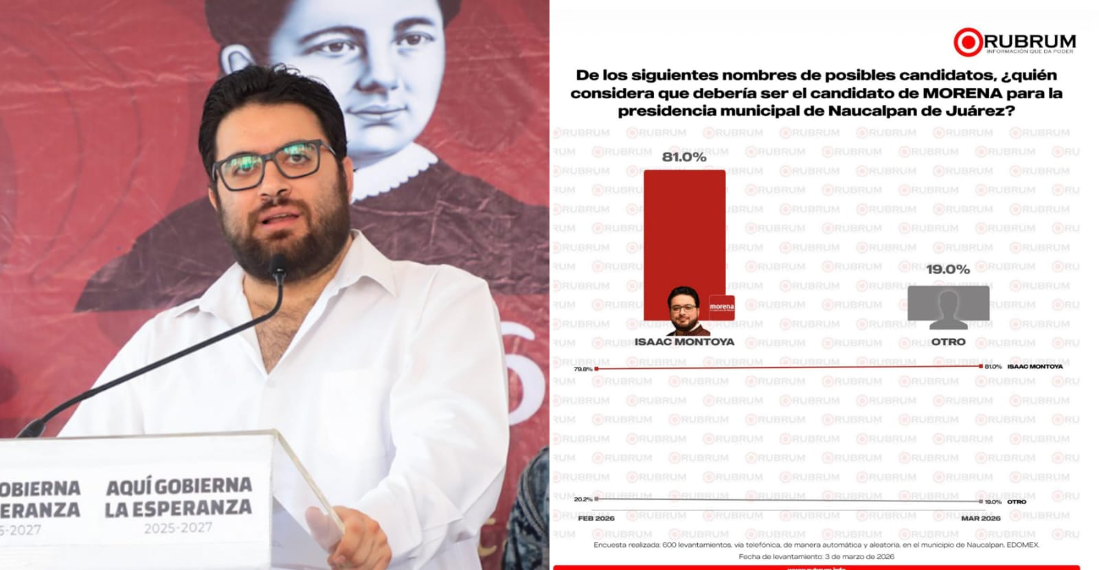 El presidente municipal de Naucalpan de Juárez, Isaac Montoya, va “en caballo de hacienda” rumbo a una eventual reelección en 2027, al registrar 81 por ciento de las preferencias electorales, de acuerdo con un sondeo de la encuestadora RUBRUM.