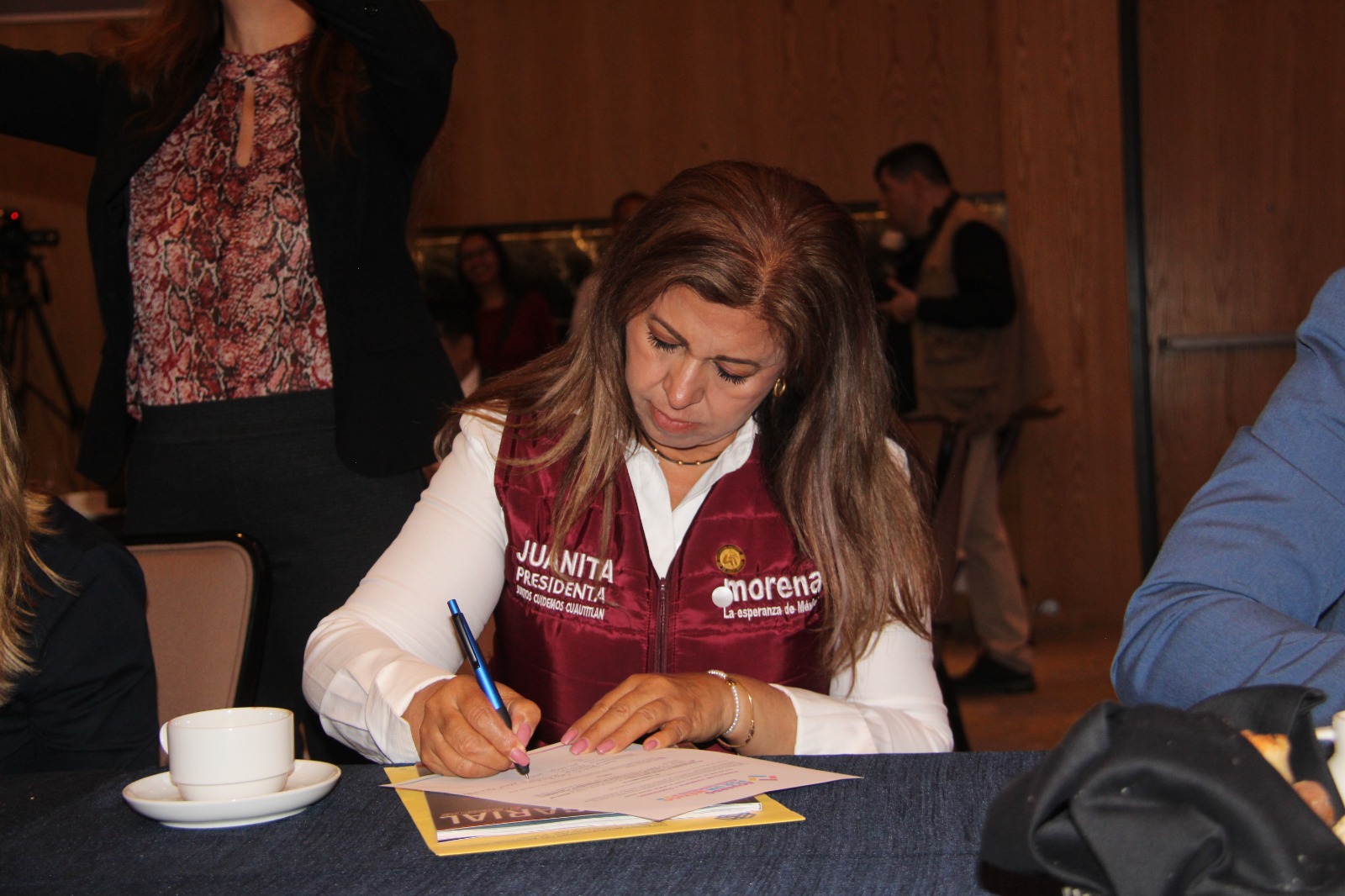 Con el objetivo de fortalecer el sistema político democrático, el estado de derecho, la garantía de seguridad y justicia, la conservación del medio ambiente, la promoción de una economía sostenible, el acceso universal a la salud, la garantía de una educación de calidad para todos y la formalidad laboral, la candidata de la Coalición “Sigamos Haciendo Historia en el Estado de México” a la presidencia municipal de Cuautitlán, Juanita Carrillo, firmó el Acuerdo por un México con Desarrollo Inclusivo, convocado por la COPARMEX.
