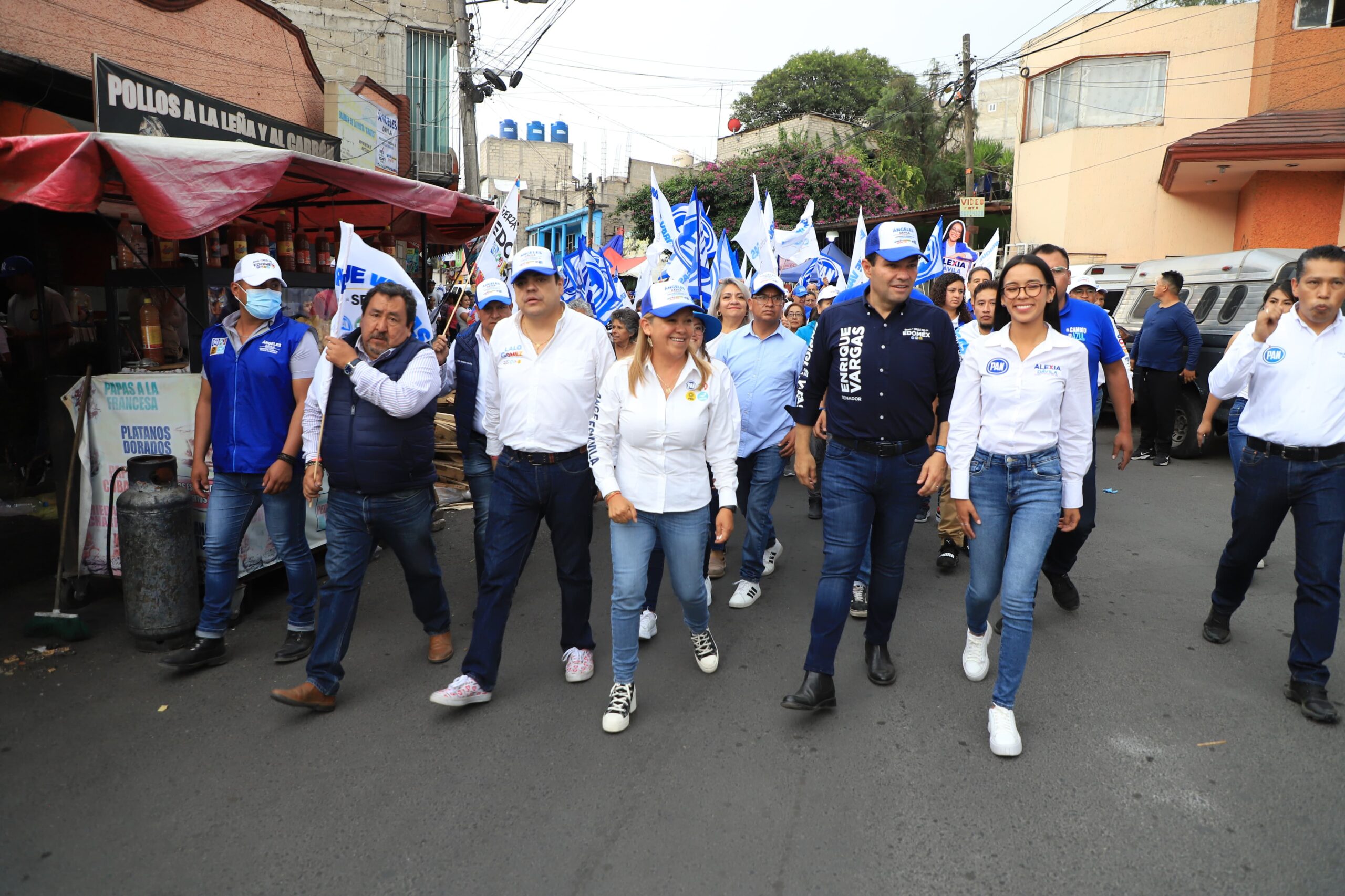 NICOLÁS ROMERO, Méx.- Miles de vecinos acompañaron y mostraron su respaldo total a la candidata a presidenta municipal por la coalición Fuerza y Corazón por Edomex, durante un recorrido en Santa María Magdalena Cahuacán y la plaza del Pueblo de Barrón, en el que estuvo acompañada por el candidato a Senador, Enrique Vargas; Lalo Gómez, candidato a diputado federal y Alexia Dávila, candidata a diputada local.