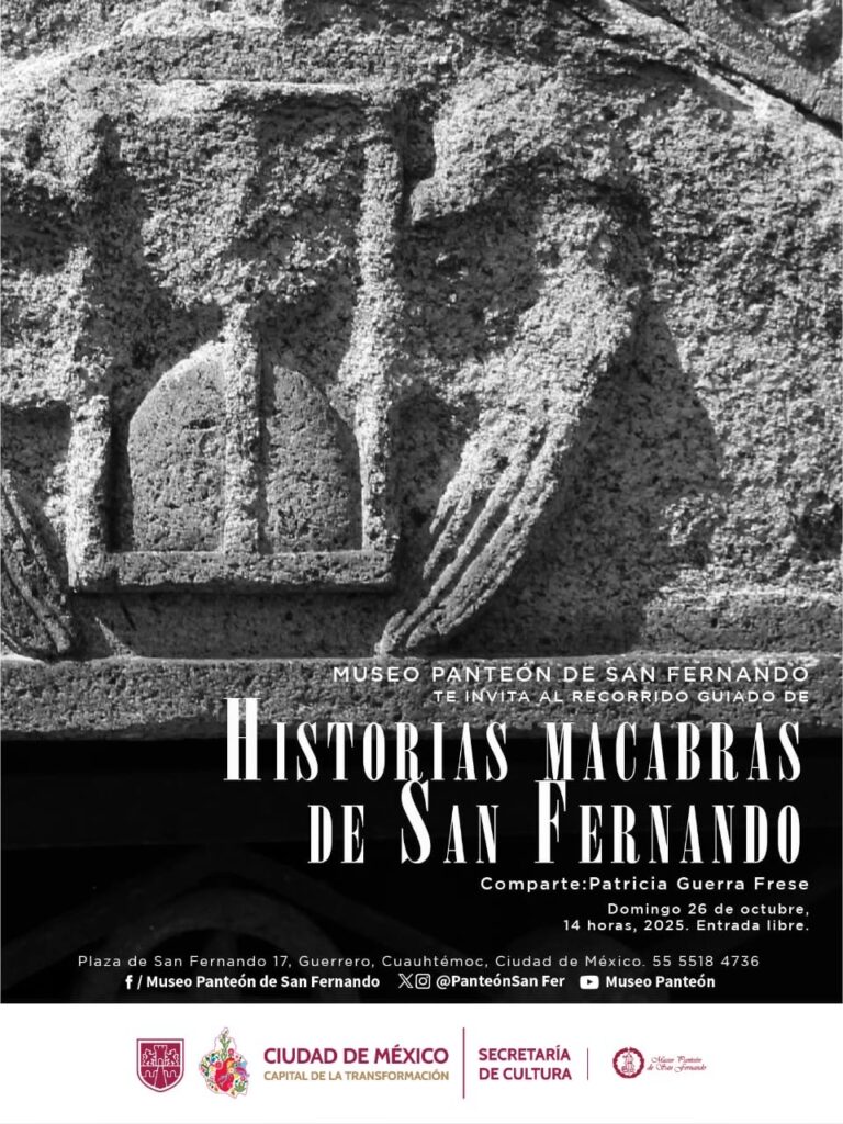 Y para compartir con las y los asistentes todos sus secretos, el recinto tiene preparada una visita guiada titulada “Las otras lápidas de la historia”, en la que Jovanny Emmanuel García Galván le dará foco a personajes poco conocidos del Panteón San Fernando. La cita es el domingo 19 de octubre a las 13 horas.