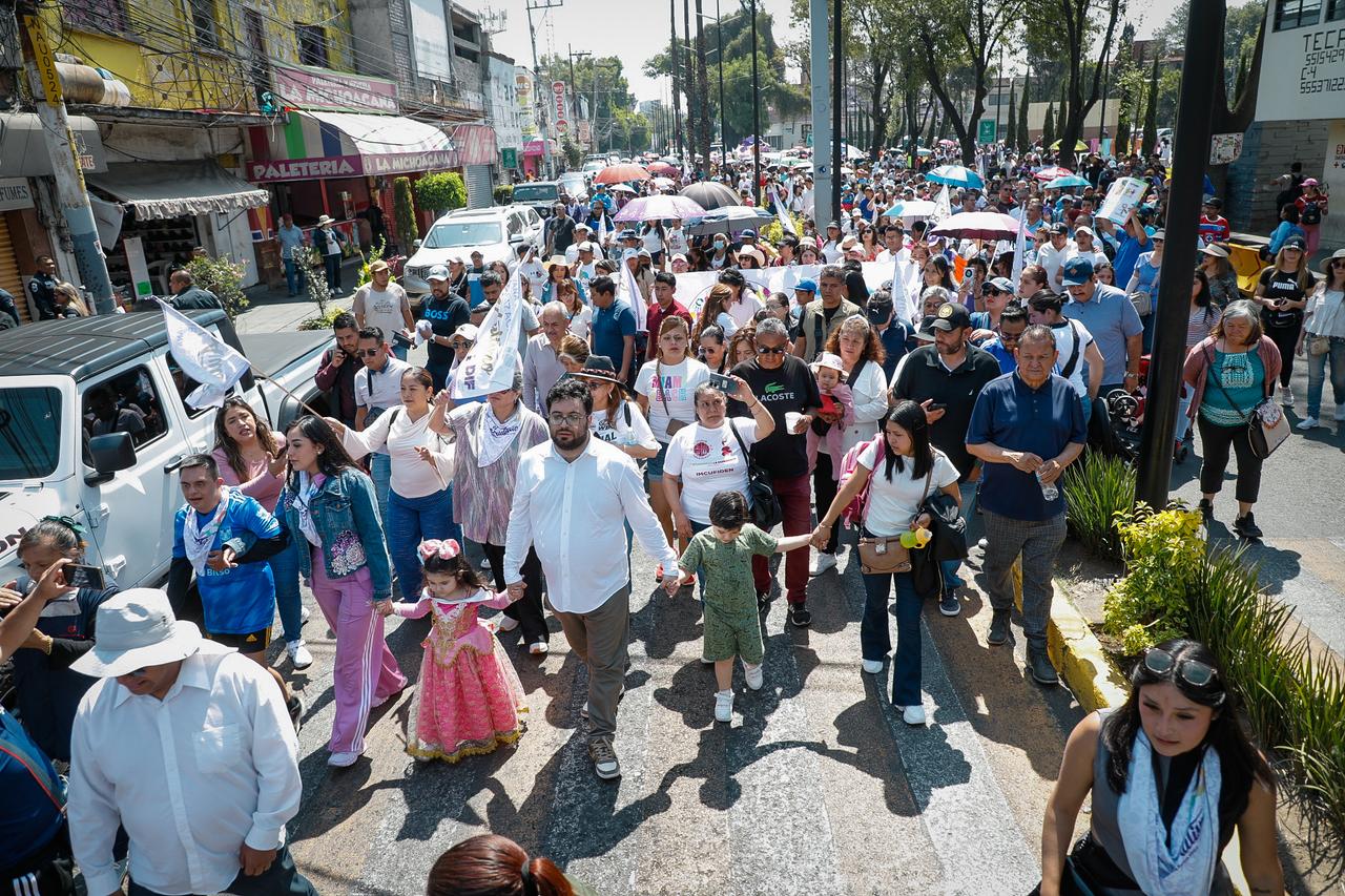 Más de mil personas participaron en la caminata que partió del Parque Revolución y culminó en la explanada del Palacio Municipal, donde se instalaron juegos y actividades para niñas y niños que asistieron con sus familias.