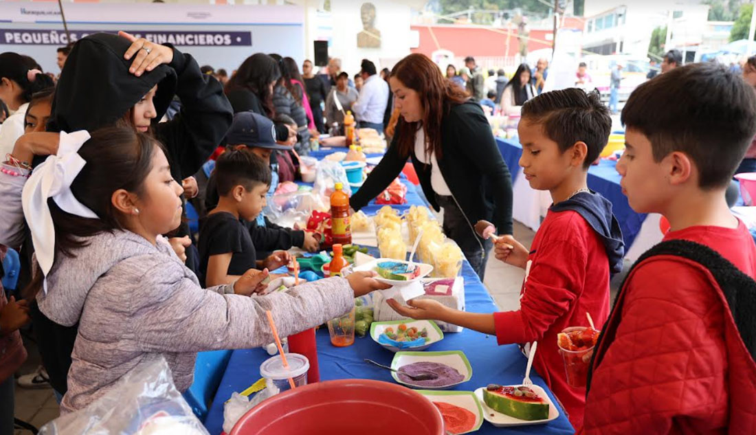 Como parte final de esta capacitación, los 100 pequeños presentaron en la Explanada Municipal los 24 proyectos que desarrollaron, donde ofrecieron al público sus productos, entre ellos, pizzas, postres, botanas, frutas preparadas y aguas de sabor, entre otros.