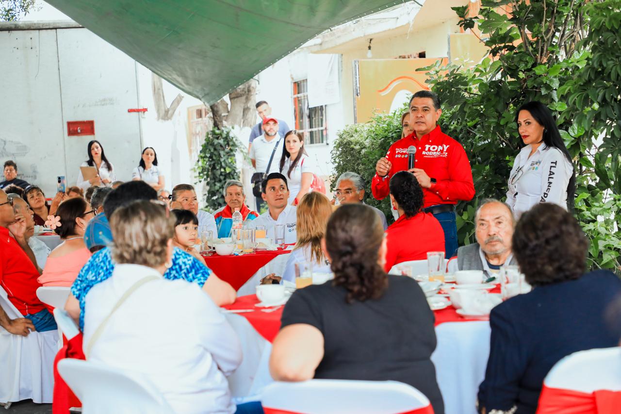 En reunión con vecinos de la colonia La Comunidad, el candidato de la coalición Fuerza y Corazón por el Estado de México en Tlalnepantla, Tony Rodríguez, dijo que vienen los días cruciales, por lo que invitó a ciudadanos a salir a votar con su familia y amigos para continuar con el progreso de Tlalnepantla.