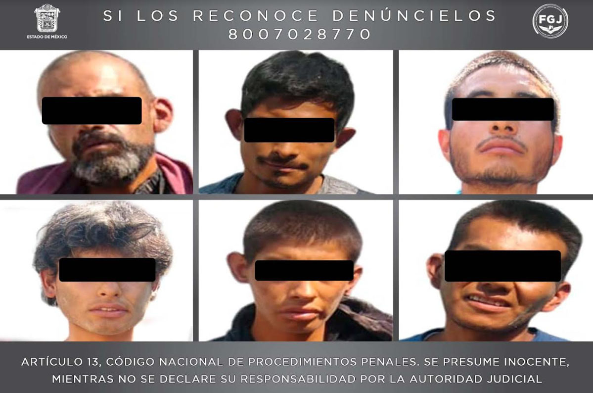 Durante esta acción fueron detenidos Marco Antonio “N” de 30 años, Luis Antonio “N” de 24 años, Emmanuel “N” de 23 años, Francisco Javier “N” 20 años, José Ángel “N” de 27 años, Jorge Abel “N” de 42 años.