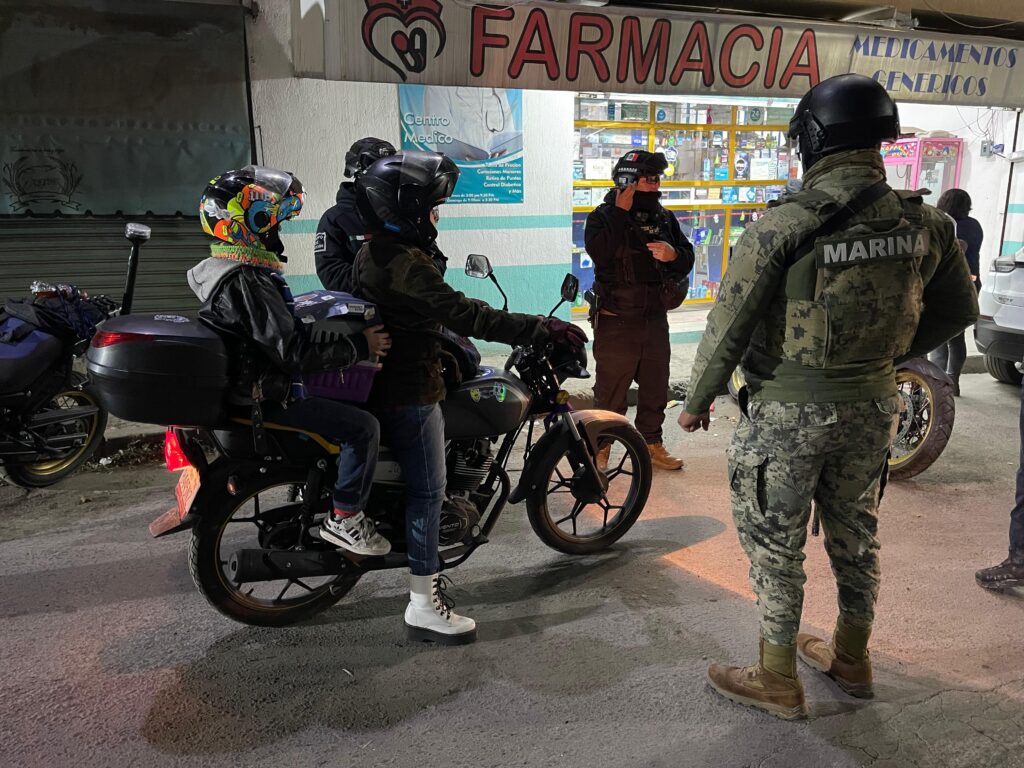 La intención de estos despliegues de policía municipal con apoyo de Marina es detectar motos robadas y evitar la comisión de ilícitos de alto impacto a bordo de estos vehículos, ya que son los que más se usan en robos con violencia.