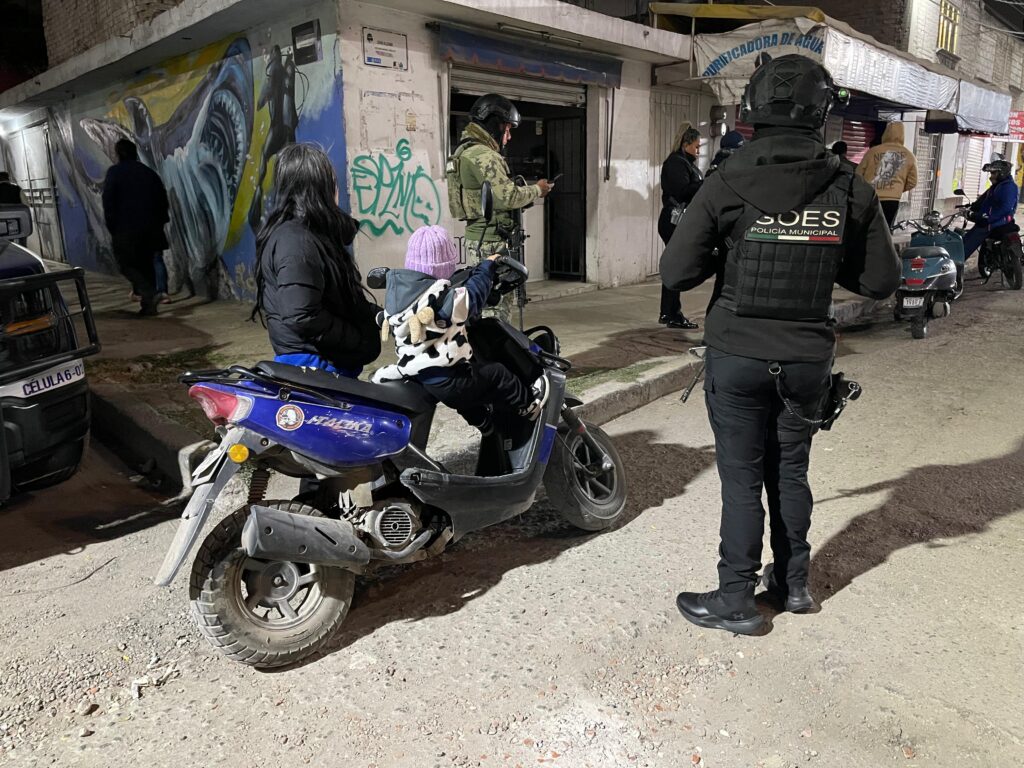 El despliegue operativo se realizó con 27 elementos y 10 unidades del Grupo de Operaciones Especiales (GOES), Tránsito, Motocicletas, Policía Metropolitana y Marina, quienes instalaron un filtro de revisión en la colonia Miguel Hidalgo.