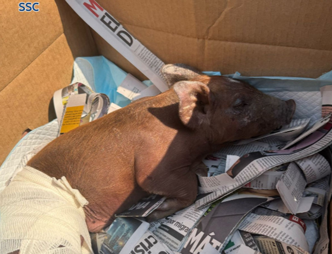 Al llegar al punto, los uniformados se entrevistaron con un hombre quien les refirió que encontró a un lechón lesionado, por lo que lo puso en una caja de cartón para protegerlo y solicitó el apoyo de personal de la BVA.