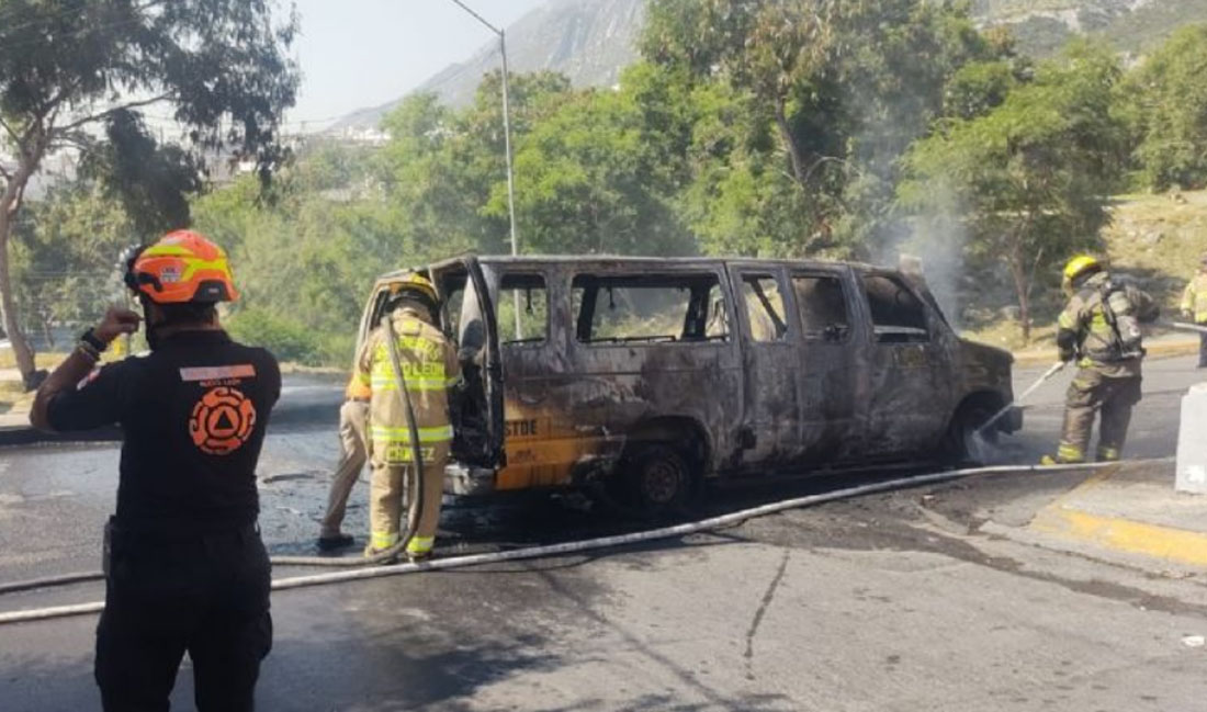 NUEVO LEÓN, Méx.- Un vehículo de transporte escolar se incendió en el municipio de Santa Catarina, en Nuevo León; tres alumnos y dos adultos resultaron ilesos.