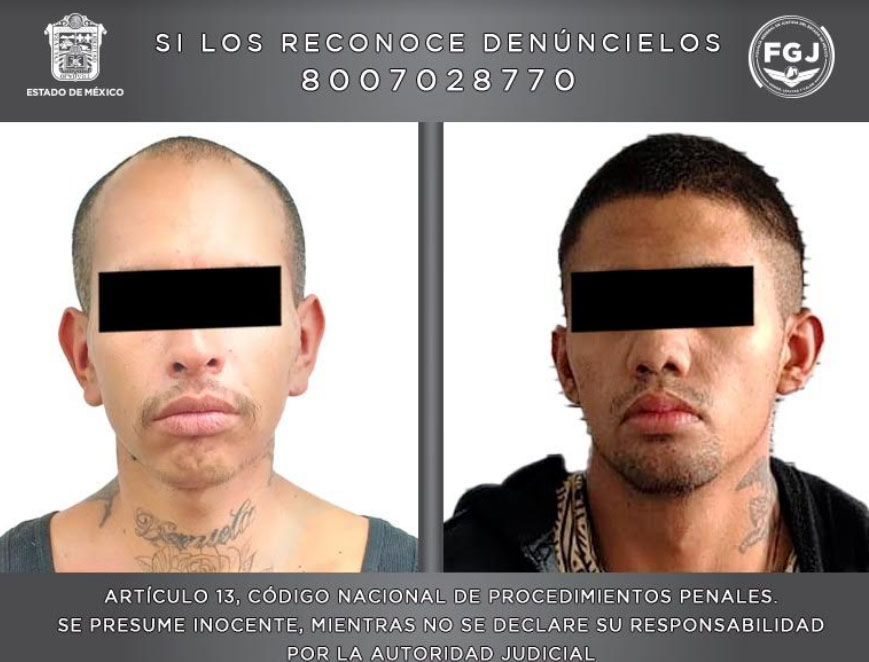 ZUMPANGO, Méx.- En acción conjunta, elementos de la Fiscalía General de Justicia mexiquense (FGJEM), así como de la Secretaría de Seguridad y Protección Ciudadana federal (SSPC), a través de la Comisión Nacional Antihomicidio (CONAHO), detuvieron en cumplimiento de orden de aprehensión a Ángel Raymundo “N” de 29 años y a Fernando Ángel “N” de 19…