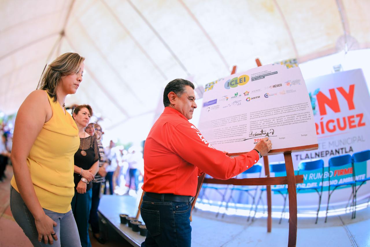 Ante vecinos de la colonia El Tenayo el candidato firmó un convenio con organizaciones expertas en materia ambiental donde se comprometió a seguir perforando y rehabilitando pozos de agua, plantas tratadoras y a construir tanques de almacenamiento para hacer frente a la crisis hídrica y Tlalnepantla dependa cada vez menos de la entrega de agua del Sistema Cutzamala.