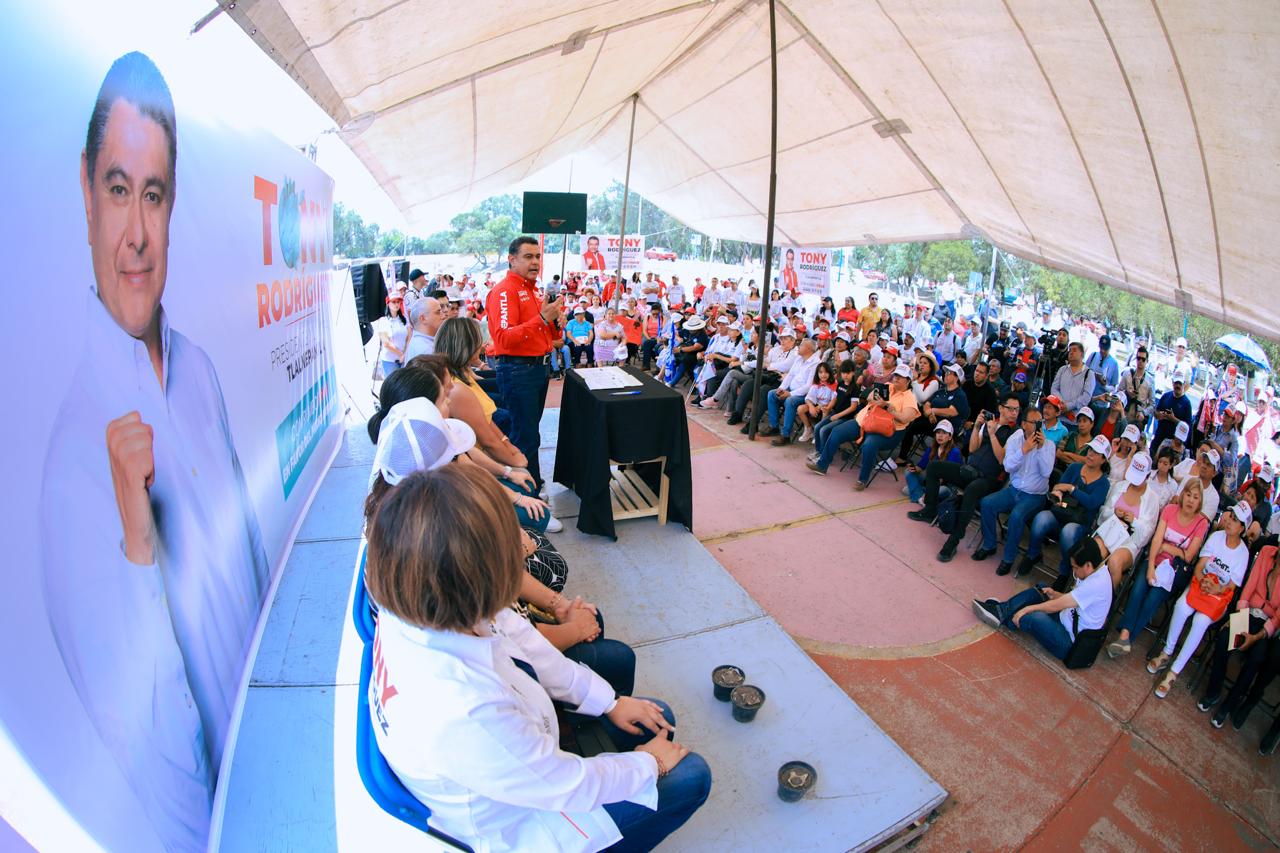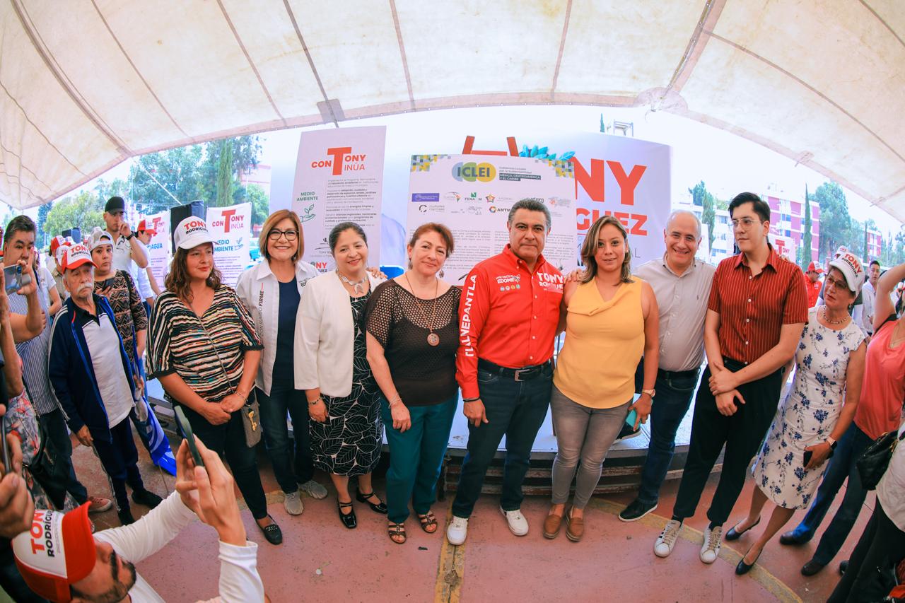 TLALNEPANTLA, Méx.- El candidato de la coalición PRI, PAN, PRD y Nueva Alianza, Tony Rodríguez, impulsará programas de captación de agua pluvial, reciclaje del vital líquido, reforestación y rescate de espacios públicos como medida ambiental que permita que haya más agua en las casas de Tlalnepantla.