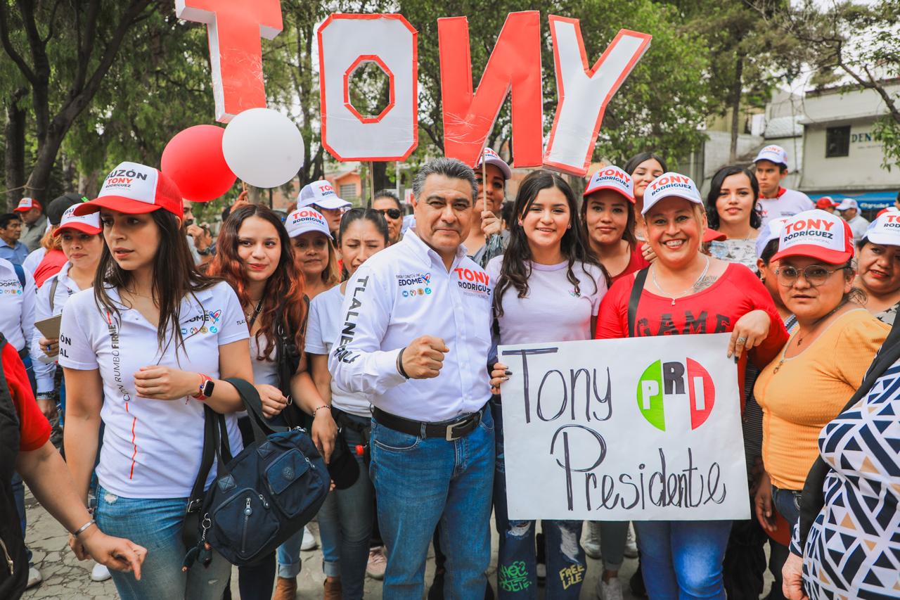 Tony Rodríguez, candidato de la Coalición “Fuerza y Corazón por el Estado de México”, dijo que mientras los candidatos opositores se la pasan calumniando y diciendo mentiras porque no tienen propuestas, él está en la calle informándole a los vecinos los logros de su administración y los proyectos futuros para Tlalnepantla.