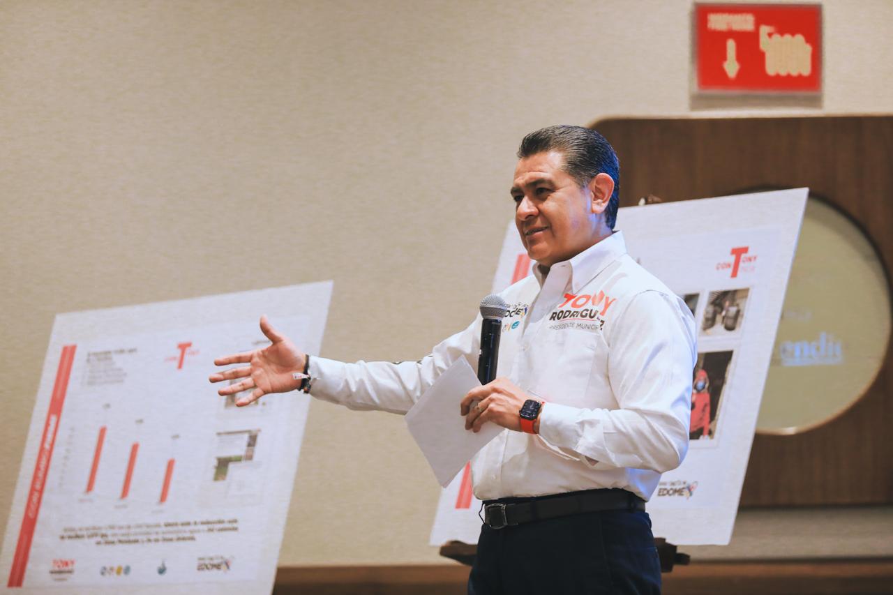 El candidato Tony Rodríguez, dijo que en escuelas y edificios públicos habrá sistemas de captación para que no se use el agua potable en labores de limpieza, “también rehabilitamos 55 cisternas en unidades habitacionales, con lo que mejoramos el abasto de agua en estas zonas”.