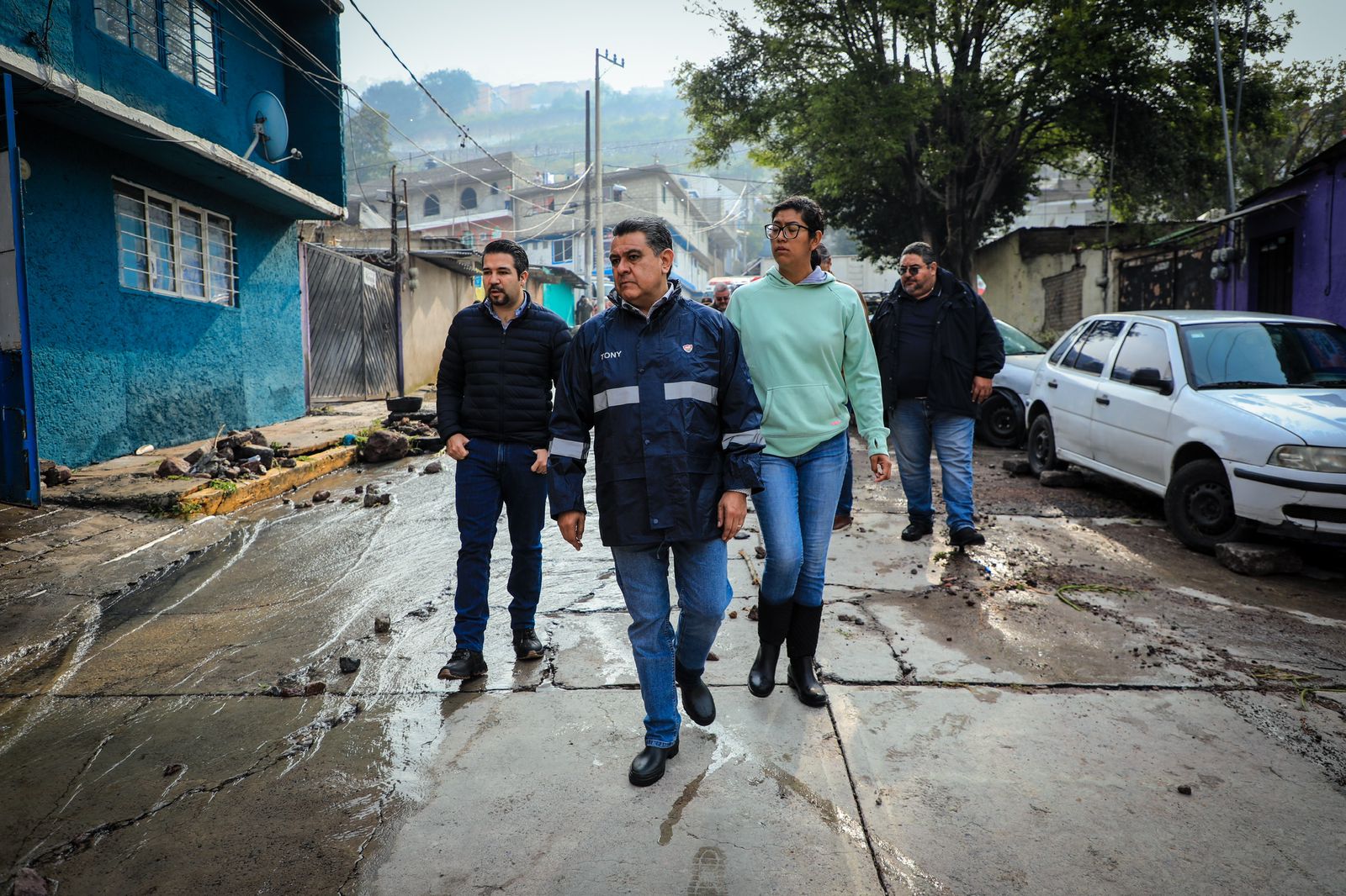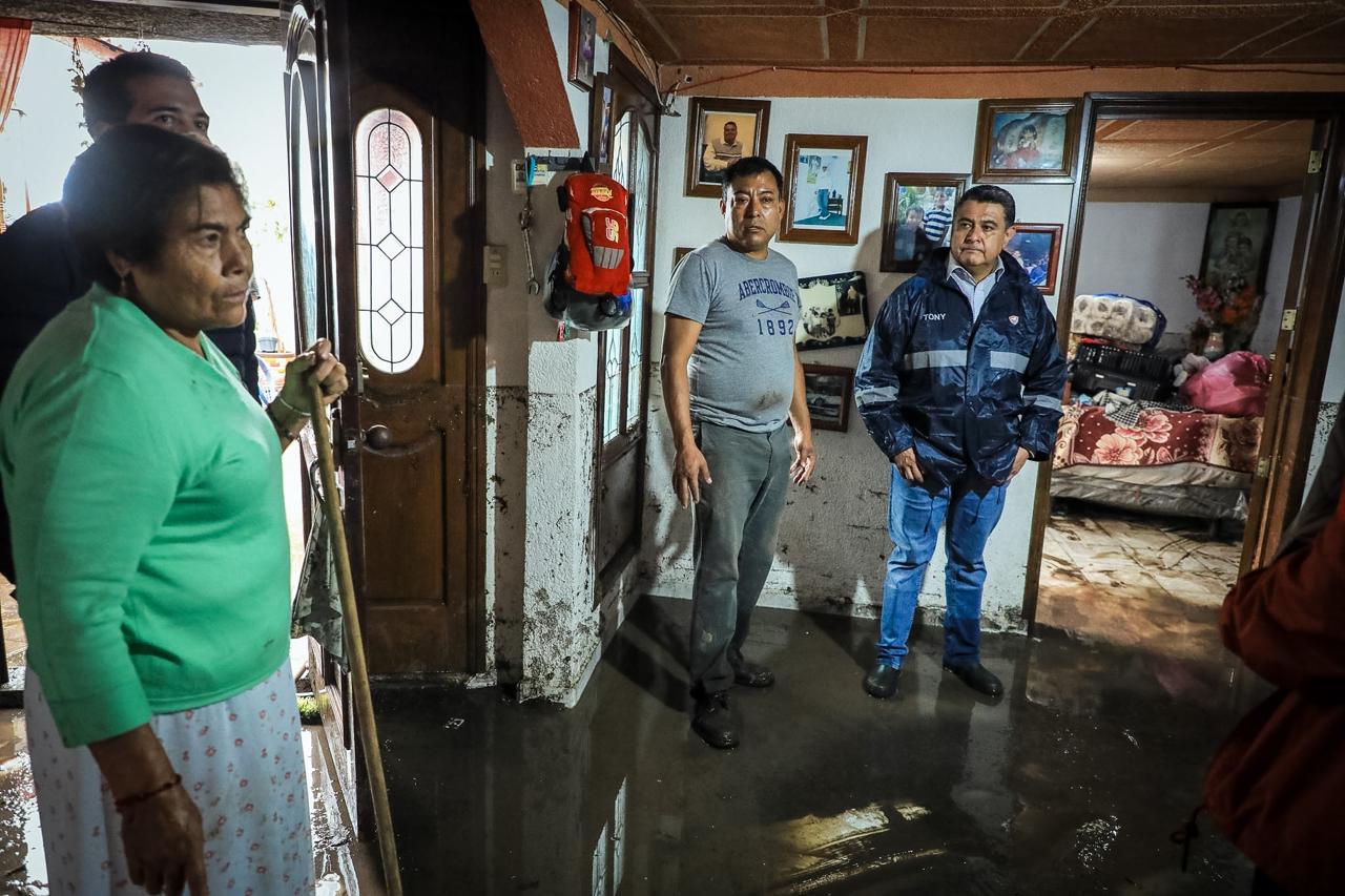 Tony Rodríguez visitó las colonias más afectadas, donde la fuerza del agua que escurrió del cerro levantó el pavimento y destruyó algunas líneas de agua potable, ocasionando daños en vehículos, derrumbe de árboles y dejando inundados algunos hogares. Personal del Ayuntamiento se encuentra realizando un censo casa por casa para tener de manera numérica las afectaciones y magnitud de las fuertes lluvias, para dar solución a todas y todos.