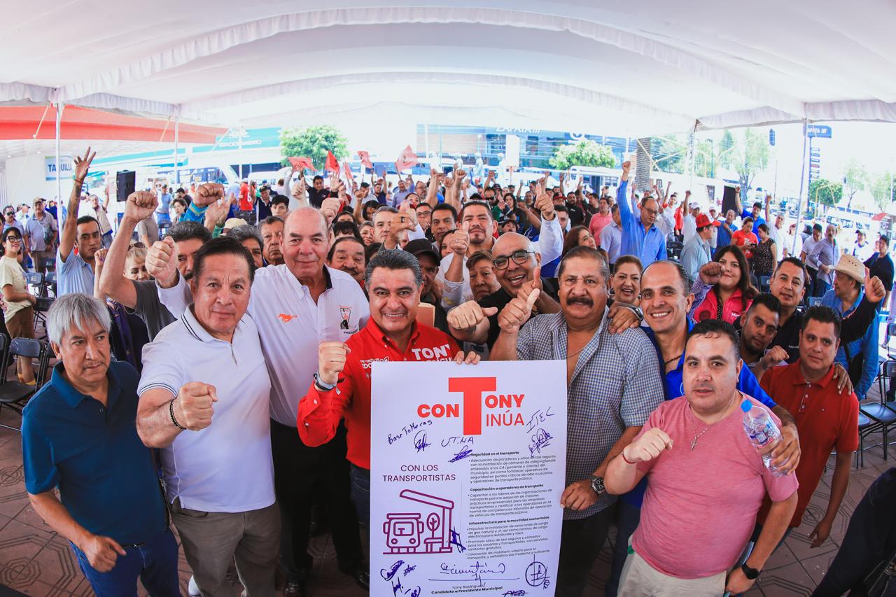 En tanto, los líderes del transporte en Tlalnepantla, en voz de Miguel Canchola, aseguraron que compararon las propuestas para el transporte de todos los candidatos y que la de Tony Rodríguez simplemente es la mejor porque él sí conoce las necesidades de los transportistas.