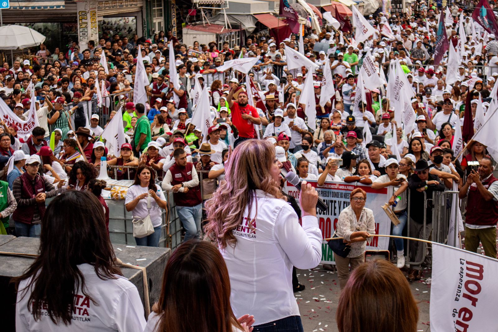 CUAUTITLÁN, Méx.- Ante más de cinco mil cuautitlenses que se dieron cita en las inmediaciones del jardín municipal, la candidata a la presidencia municipal de Cuautitlán por la coalición “Sigamos Haciendo Historia en el Estado de México”, Juanita Carrillo Luna, cerró su campaña con un contundente llamado a la transformación y el cuidado de los cuautitlenses, rumbo a las elecciones del 2 de junio.
